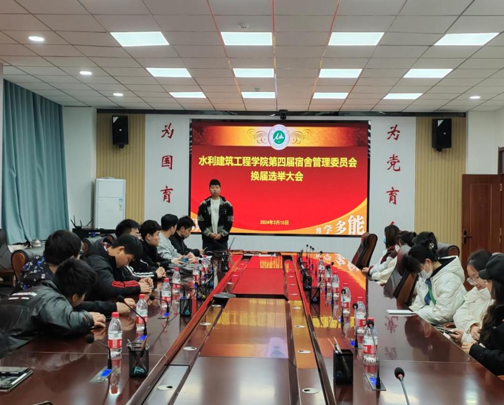 2024年3月15日,水建伦理片 第四届宿舍管理委员会换届选举大会在伦理片 尚水会议室圆满举行,院学生党总支书记、宿管委指导教师李小强及宿管委全体成员参加会议。