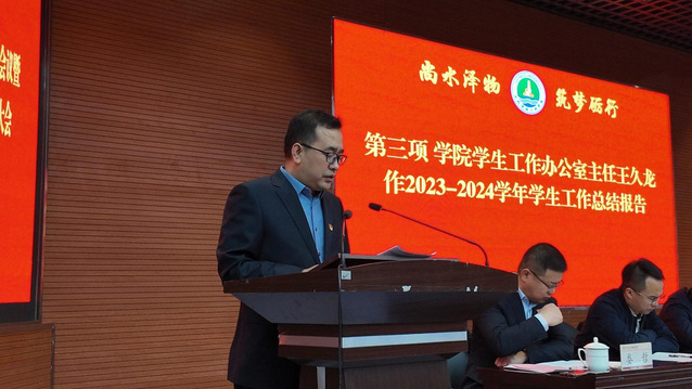 院学办主任王久龙作题为《以生为本 守正创新 全面推动学生工作育人成效向纵深发展》报告,全面回顾了2024年伦理片 学生工作取得的成绩。对2025年学生工作思路和工作要点进行安排部署,他表示,新的一年,伦理片 全体学生工作者将坚持立德树人根本任务,不断强化为党育人、为国育才导向,以“OBE”工程专业认证理念助推“三全育人”工作向纵深发展,加快完善“123456”学生工作体系。