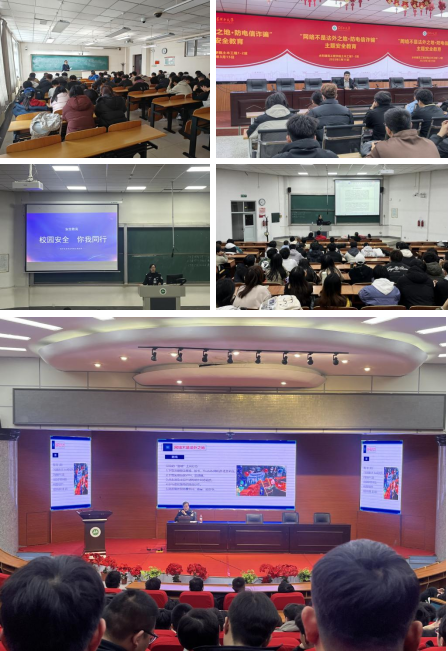 2025年2月28日—3月18日,通过警校协同“集中+分散”的形式组织开展反诈宣讲会,做到教育警示全员覆盖。东明新村派出所警官3次受邀走进课堂开展集中宣讲。宣讲会上,派出所警官结合近年来,高校高发频发的“刷单返利”“机票退改”“虚拟游戏交易”等典型案例,深入剖析诈骗分子的惯用伎俩,并现场演示国家反诈中心APP的安装与使用方法。警官提醒同学们,务必警惕“高回报”“零风险”“共享屏幕”等情况,遇到可疑情况及时向辅导员和派出所民警反馈。