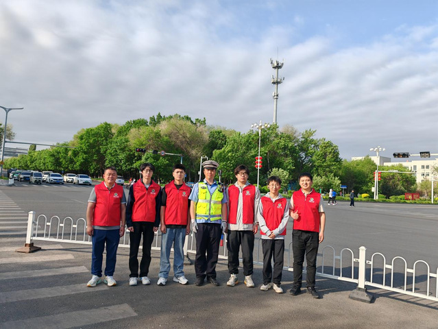 国际劳动节当日,马克思主义伦理片 思政指导教师樊家军、带队教师张壮壮、全体参与实践学生身穿志愿服装按时到达石河子市城区9个交通重点路口,积极协助民警开展交通秩序维护、违规行为劝导、安全知识宣讲等工作,以高度的责任感和使命感投身到交通政务实践中。