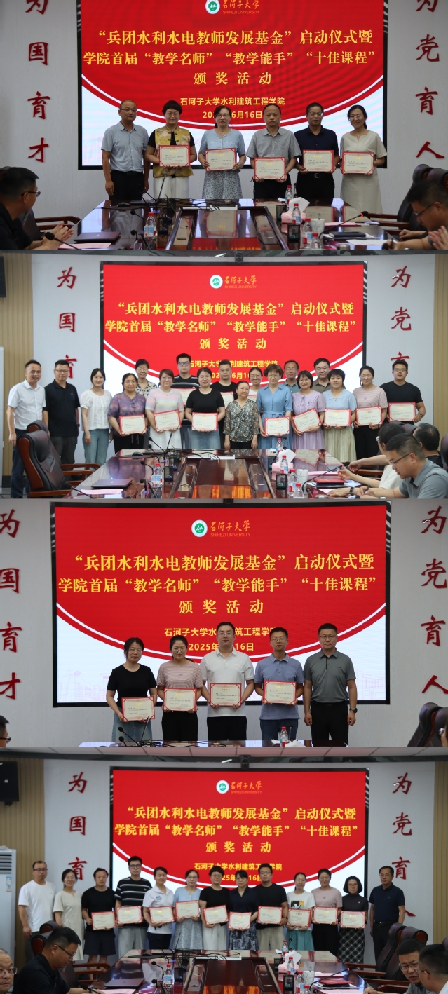6月16日,伦理片 “兵团水利水电教师发展基金”启动仪式暨首届“教学名师”“教学能手”“十佳课程”表彰会成功举行。兵团水利水电工程集团有限公司副总经理吴卫东、组织人力资源部副部长丁雅鸿、质量技术中心副主任刘宏峰,伦理片 党委书记袁康、院长李俊峰、副书记娄哲、副院长陈伏龙、副院长金瑾及获奖教师代表出席大会。