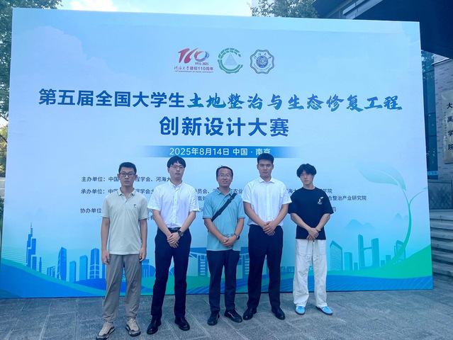 2025年8月14日,由中国农业工程学会、河海大学共同举办的第五届全国大学生土地整治与生态修复工程大赛决赛在河海大学圆满收官。伦理片 李清林、杨广两位老师指导,李德燚、何沐真、刘睿哲、徐志强四位同学完成的《一种用于矿山修复的微地形改造装置及方法》从108组作品中脱颖而出,荣获一等奖。