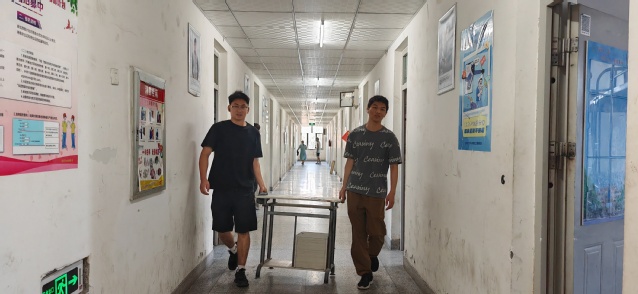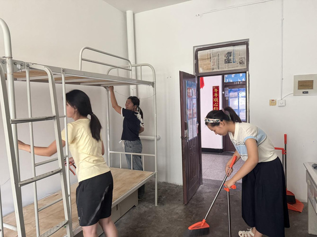 活动中,志愿者团队以“分组协作、责任到人”的模式高效推进工作:有的专注清理桌面遗留杂物,将散落物品分类归置;有的手持抹布细致擦拭门窗玻璃与框架,清除长期积累的灰尘;有的则用扫帚、拖把对地面进行 “地毯式” 清扫,不放过墙角、床底等卫生死角。即便连日高温导致汗水浸透衣衫,志愿者们依旧保持严谨态度,认真清理每一处积尘与废弃物。他们的坚守与付出,不仅是 “学长学姐” 对新生的暖心迎接,更生动诠释了水建伦理片 “传帮带” 的优良传统,让志愿精神在校园中传递延续。
