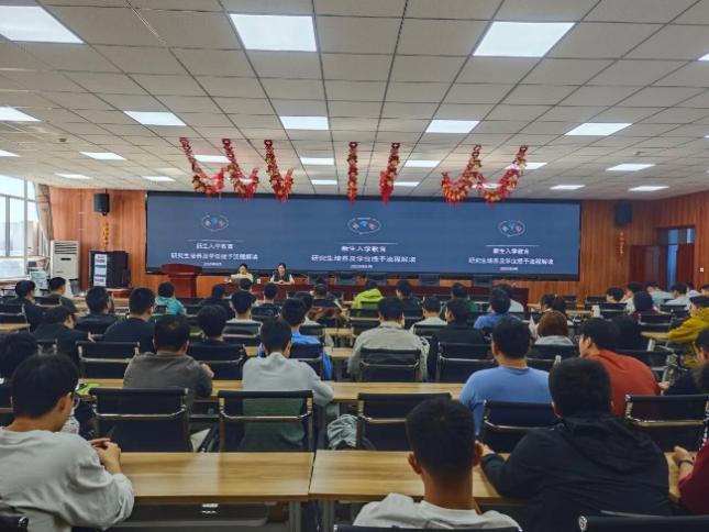 在制度建设方面,为进一步强化研究生行为管理、引导学生遵规守纪、自警自律,伦理片 党委副书记娄哲结合典型案例,围绕相关法律法规和校纪校规开展专题教育,引导新生严格遵守校纪校规、做好自身安全防护,树立规矩和自律意识;研究生辅导员周鑫老师就日常事务办理与请销假管理制度等与学生面对面进行解读和交流咨询。