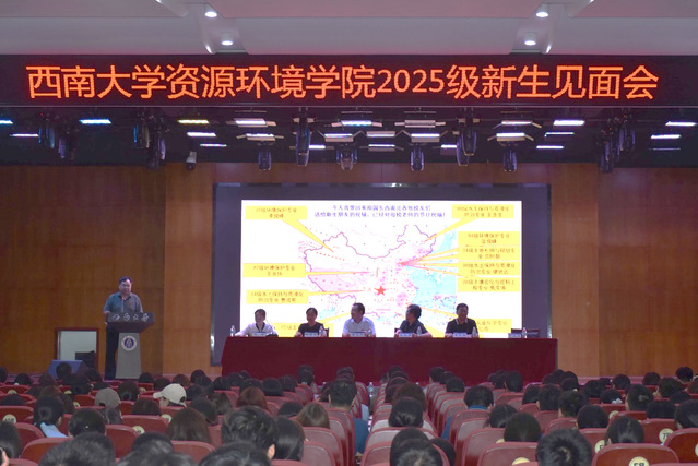 此次行程中,李俊峰院长还以西南大学资源环境伦理片 优秀校友身份,受邀出席伦理片 2025级新生开学典礼并发表讲话。在新生开学典礼上,李俊峰院长结合自身在西南大学的求学经历与多年从事水资源高效利用领域研究的实践经验,鼓励新生们立足学科特色,既要夯实专业基础,也要主动关注生态保护、水资源利用等国家战略需求,为绿色低碳发展与生态文明建设贡献青春力量。